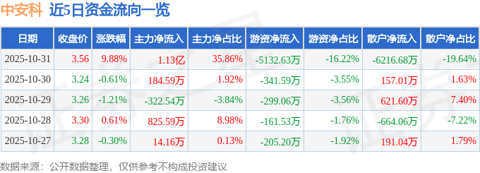 10月31日的资金流向数据方面,主力资金净流入1.13亿元,占总成交额35.86%,游资资金净流出5132.63万元,占总成交额16.22%,散户资金净流出6216.68万元,占总成交额19.64%。