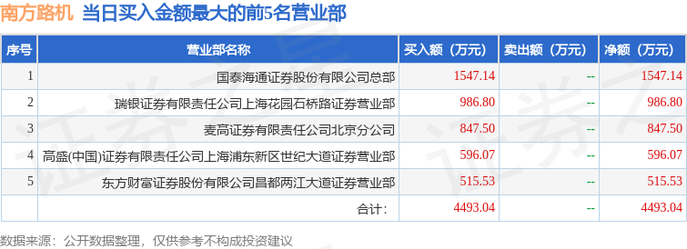证券之星消息,沪深交易所2025年10月31日公布的交易公开信息显示,南方路机(603280)因有价格涨跌幅限制的日换手率达到20%的前五只证券登上龙虎榜。此次是近5个交易日内第4次上榜。