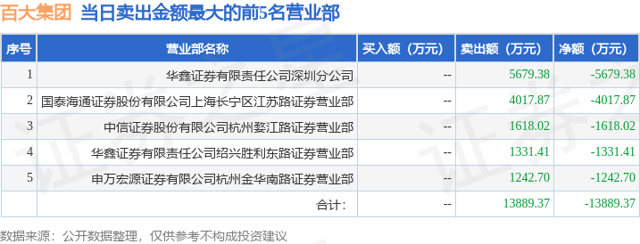 证券之星消息,沪深交易所2025年12月17日公布的交易公开信息显示,百大集团(600865)因有价格涨跌幅限制的日收盘价格涨幅偏离值达到7%的前五只证券,有价格涨跌幅限制的日换手率达到20%的前五只证券登上龙虎榜。此次是近5个交易日内第3次上榜。