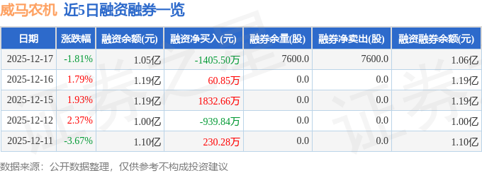 证券之星消息,截至2025年12月17日收盘,威马农机(301533)报收于41.28元,下跌1.81%,换手率16.73%,成交量4.76万手,成交额1.95亿元。