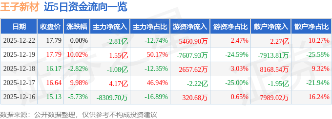 证券之星消息,截至2025年12月22日收盘,王子新材(002735)报收于17.79元,上涨0.0%,换手率43.14%,成交量121.0万手,成交额22.07亿元。